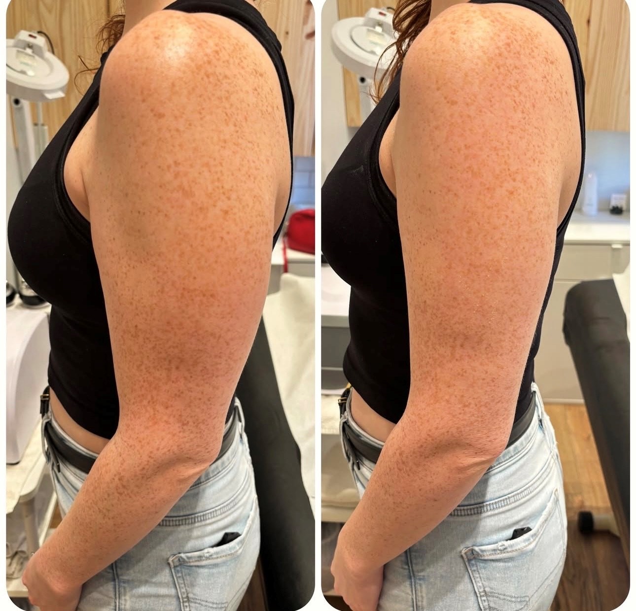- Non-Invasive Fat reduction: This is a perfect way to target stubborn fat deposited on the arms, abdomen, thighs and more.